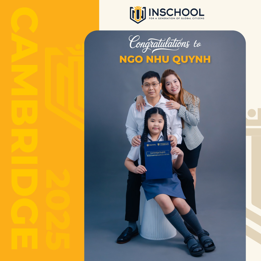 Tiếp nối truyền thống học thuật đáng tự hào của các thế hệ INSers qua nhiều năm, năm nay, các INSers tiếp tục ghi dấu ấn rực rỡ khi xuất sắc đạt điểm tuyệt đối 15/15 trong kỳ thi lấy chứng chỉ quốc tế Cambridge. Đây là minh chứng rõ nét cho sự nỗ lực bền bỉ, tinh thần học tập nghiêm túc của Học sinh cùng sự tận tâm, chuyên môn vững vàng của Đội ngũ Giáo viên INSchool.