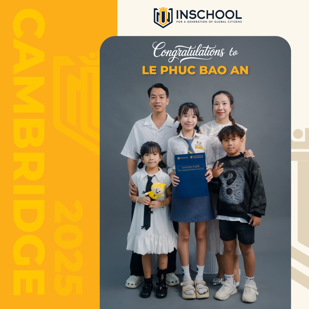 Tại INSchool, Học sinh được xây dựng lộ trình tiếng Anh Cambridge – IELTS bài bản, giảng dạy từ cơ bản đến nâng cao theo từng cấp học, giúp các em có đủ thời gian tiếp thu kiến thức và phát triển năng lực ngôn ngữ một cách vững chắc. Và các chứng chỉ Cambridge & IELTS chính là “tấm vé vàng” có giá trị toàn cầu, giúp Học sinh thuận lợi trong du học, du lịch, định cư và tự tin trở thành công dân toàn cầu.